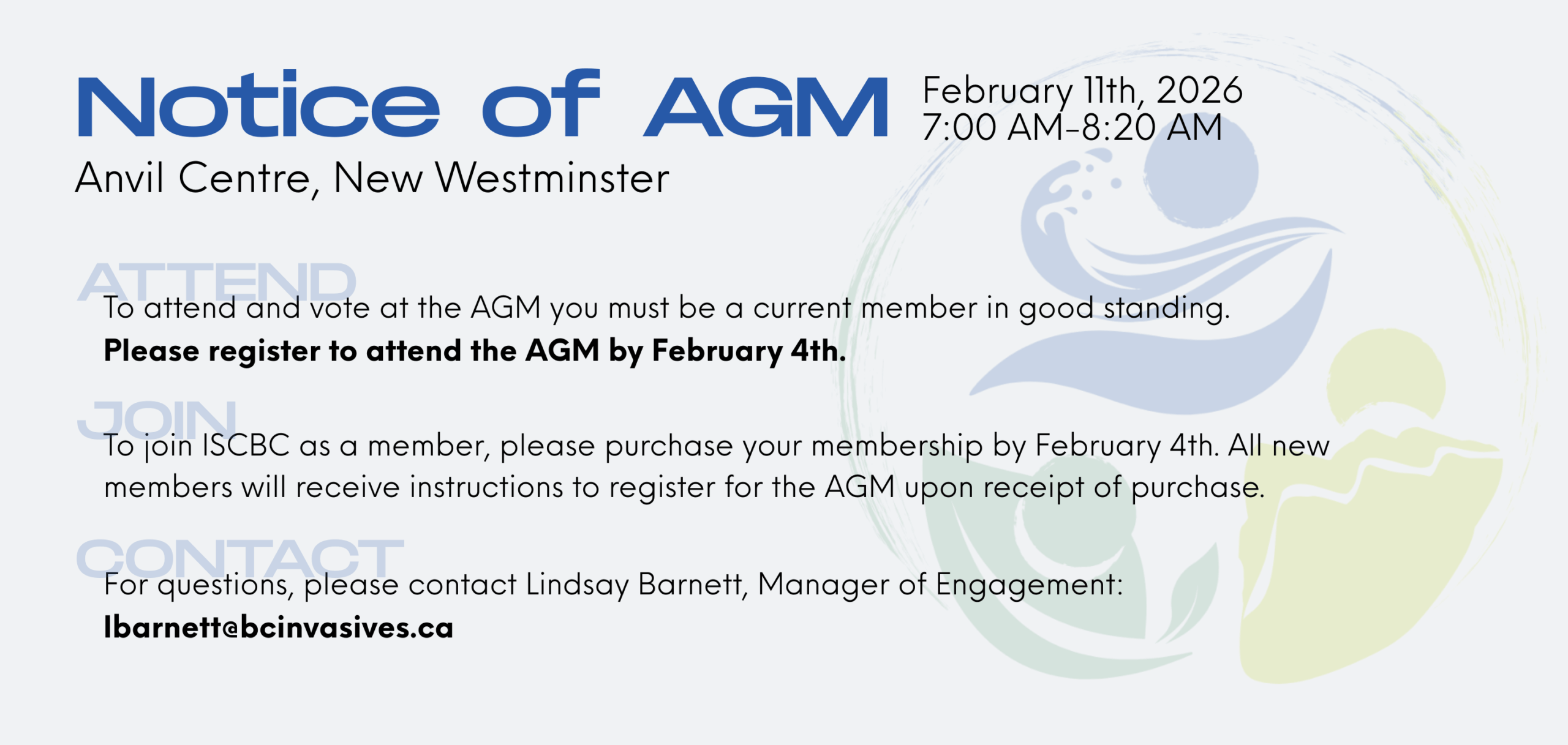 Prevention and education are key to protecting BC’s vast outdoor beauty, clean air and fresh water. ISCBC is supported and guided by dedicated and passionate members and invite you to join the ‘team’. From scientists to business leaders, governments to community representatives, rural to urban – all are actively involved in ISCBC’s vision to ensure a future of healthy landscapes and communities free of invasive species. Join us today to ensure this vision becomes a reality.